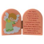 Hail Mary diptych with green Angel in pink wood 10x15 cm