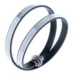 Das starre Amen-Sklavenarmband mit dem eingravierten Vaterunser auf einer 8 mm breiten Platte ist atemberaubend. Das vollständig aus rhodiniertem 925er Silber gefertigte Armband ist halb offen und weist am Anfang und am Ende des Gebets einen eingefügten Zirkonia auf.