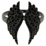 Ring AMEN Silber 925 Engel Flügel schwarze Zirkonen. Ring AMEN realisiert aus rodinierten Silber 925 und verfeinert mit den Engel Flügeln (etwa 2cm) mit schwarzen Zirkonen.