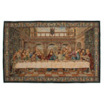 Wandteppich, Motiv: Letztes Abendmahl nach Leonardo da Vinci, Design inspiriert von einem niederländischen Wandteppich, Format: 65x110 cm. Der Wandteppich aus raffiniertem Jacquardgewebe und mit exklusivem Design wird in Italien hergestellt. Der Wandteppich ist umlaufend versäubert und ist geeignet, um auf einen Rahmen aufgezogen zu werden.