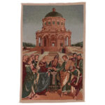 Was wir über die sakralen Gemälde geschrieben haben, gilt auch für die sakralen Wandteppiche, vor allem wenn man bedenkt, dass die Kunst der Wandteppiche sehr alt und seit jeher in der ganzen Welt verbreitet ist. Es ist kein Zufall, dass viele berühmte Maler und Künstler ihre Kunst für die Herstellung sakraler Wandteppiche zur Verfügung gestellt haben, indem sie die Grundlagen zeichneten, auf die die Handwerker dann ihre Kette aus farbigen Fäden legten.