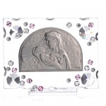 Moins précieux, mais non moins frappants et significatifs, sont les cadres en bois à accrocher de forme rectangulaire et représentant le moment de la Maternité. Il y en a de toutes sortes, décorés, composés de charmants cadres faits de feuille d’argent avec porte-photo pour accueillir une photo du petit baptisé. Il y a des boîtes de faveurs décorées avec des cristaux Swarovski de couleur fuchsia, ou des cadres en poudre de marbre avec des images en relief sur une plaque de verre et des applications en papier de soie représentant des anges gardiens. La plupart de ces faveurs de baptême conviennent aussi bien aux garçons qu’aux filles. Certains produits offrent une version de couleur différente pour les garçons et les filles, comme le cadre avec les angelots de Raphaël en argent et verre de Murano disponible en couleur turquoise. Pour changer de genre et de gamme de prix, il y a les très gracieux souvenirs de baptême en poudre de marbre, en forme de feuille ou de clé décorés de rubans, ou les aimants représentant un livre avec la Maternité gravée. Ci-dessous nous vous présentons les produits décrits, disponibles sur notre site !