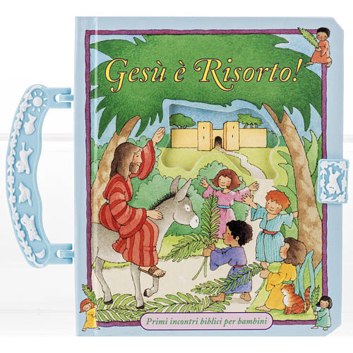 Finalmente è Pasqua! contiene racconti pasquali illustrati per bambini, mentre in La storia di Pasqua da comporre al racconto dell’ultima settimana della vita di Gesù si associa il gioco con gli adesivi per completare le illustrazioni.