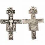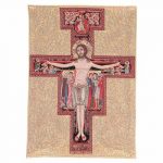 También hay una espléndida versión de tapiz con un diseño exclusivo, con tejedura Jacquard y forro de algodón. Un bolsillo especial para la inserción de la varilla permitirá colgarlo y mostrarlo. Hay crucifijos colgantes de San Damián, hechos de madera de olivo de Asís, plateados o de color. Una alternativa a los Colgantes de madera, son los Crucifijos Colgantes de metal plateado con grabado en la parte posterior. El Crucifijo de San Damián también puede ser el corazón de un Rosario con granos en madera oval marrón claro y encuadernación en seda marrón oscuro, hecho de muchos nudos, ligero y simple. ¡A continuación presentamos los productos disponibles en nuestro sitio web!